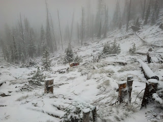 The trail was covered in snow and difficult to find. Thankfully we had Murphy who led us down the mtn. |